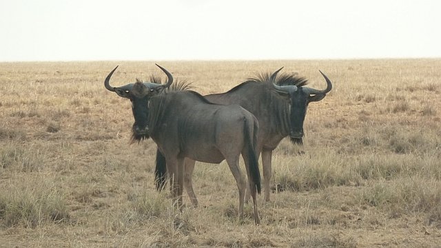 Gnu-Pärchen vor leerer Landschaft