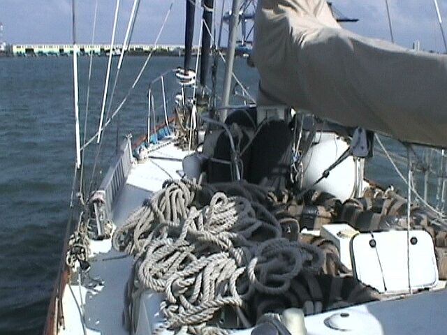Vorsegel. Cristobal Signal Station teilt ueber Funk mit, dass wir nicht die
