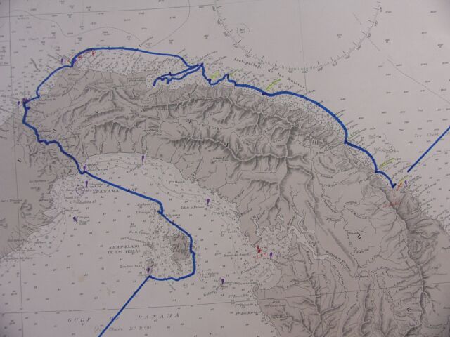 Rechts in der Karte von Cartagena kommend entlang den San Blas