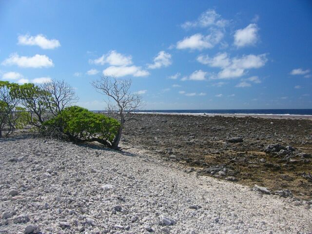 schliesslich ein wenige Meter hoher Deich aus juengeren Korallen bilden einen
