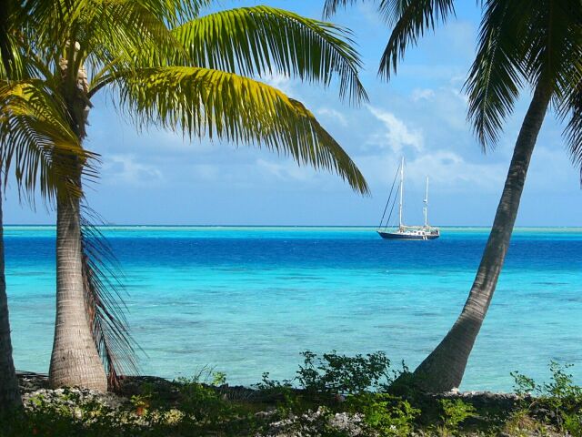 Lagune und Toau mit geschuetztem Ankerplatz am Aussenriff. Ein Freund von der
